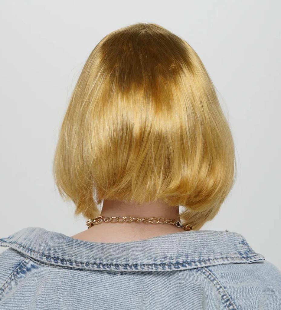 Altın Renk Düz Kesim Küt Parti Peruğu: Cesur ve Göz Alıcı Bir Görünüm İçin