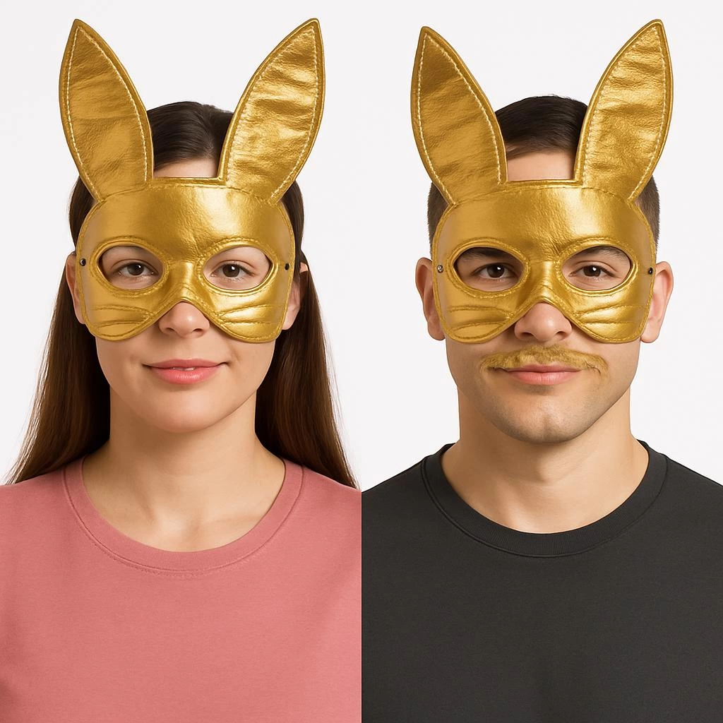 Altın Renk Kumaş Malzemeden İmal Tavşan Maskesi