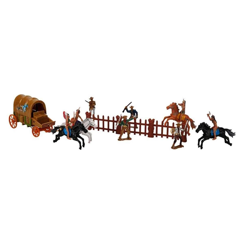 Gerçekçi detaya sahip at arabası, at, kovboy ve kızıldereli figürleri ile oyun alanınızı kendiniz kurun ve eğlence dolu oyunlara başlayın.
