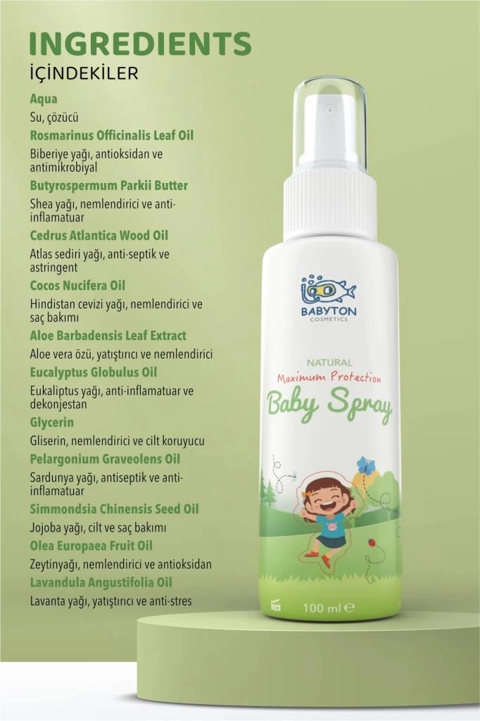 Babyton Organik ve Doğal İçerikli Vücut Koruyucu Sprey Özellikleri;