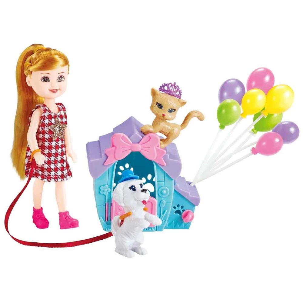 Set içerisinde; 1 adet Bellisa bebek, 1 adet köpek figürü, 1 adet kedi figürü, 1 adet kulube, rengarenk balonlar ve diğer aksesuarlar yer almaktadır. Bebeklerin ve aksesuarların rengi farklılık gösterebilir.