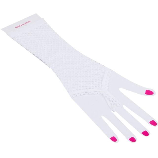 Karnavalınıza ve cadılar bayramı kılığınıza orijinal dokunuşu verecek uzun beyaz örgü eldivenler | Görünümünüzü bu 26 cm beyaz örgü eldivenlerle tamamlayın