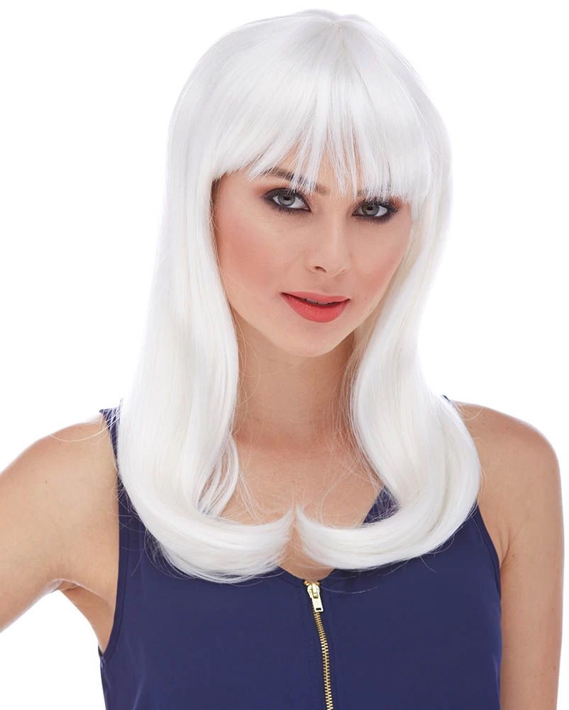 Çocuk Beyaz Renk Uzun Düz Parti Peruğu