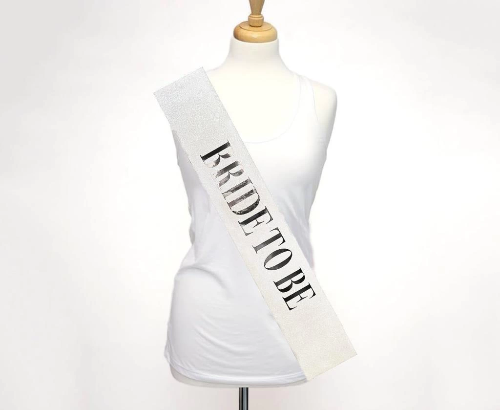 Beyaz Üzeri Gümüş Büyük Bride To Be Yazılı Simli Işıltılı Kuşak Kemer 10×80 cm