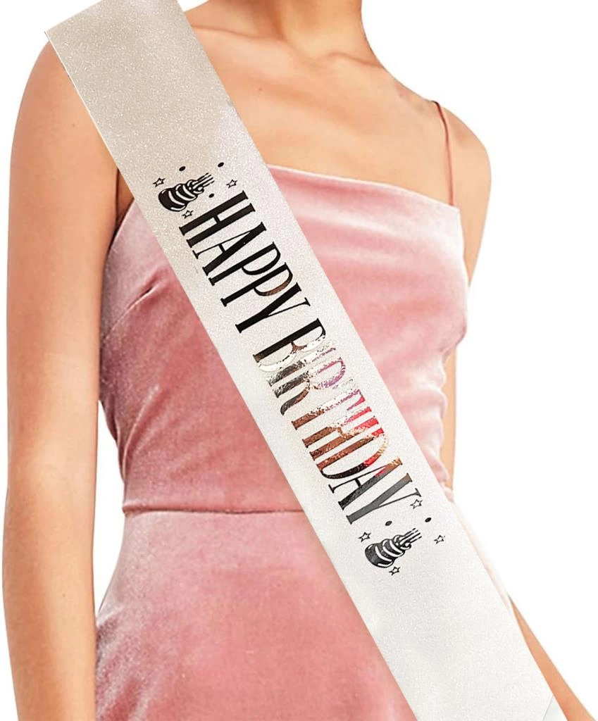 Beyaz Üzeri Gümüş Büyük “Happy Birthday” Yazılı Simli Işıltılı Kuşak Kemer’i Neden Seçmelisiniz?