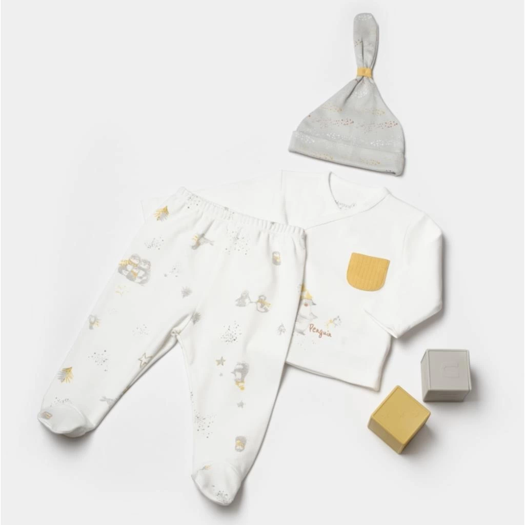 Çocuk Bibaby Biorganic Penguin Club 3’Lü Bebek Set 73336 Ekru Gri