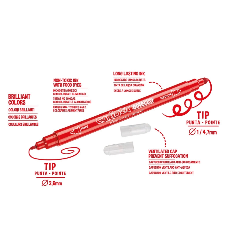 Carioca Birello Süper Yıkanabilir Çift Taraflı Keçeli Boya Kalemi 12 Li Özellikleri;