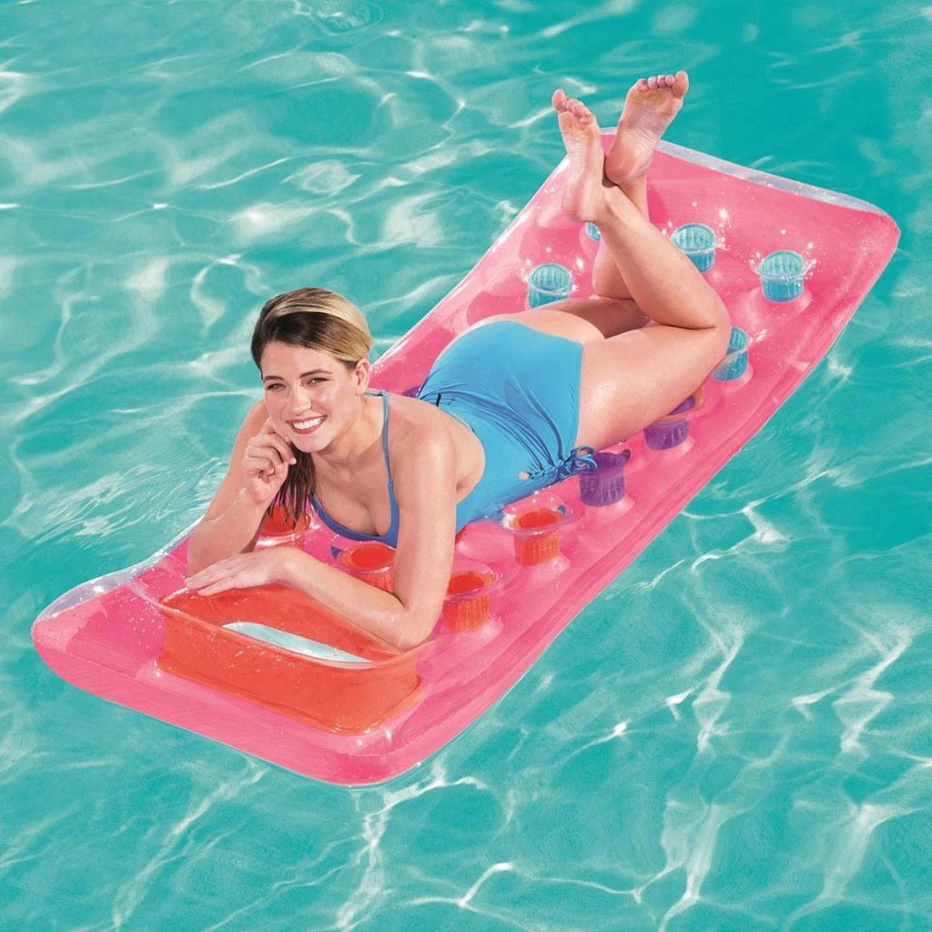 Deniz veya havuzda bardaklı yatağında güneşlenmeye ne dersiniz?