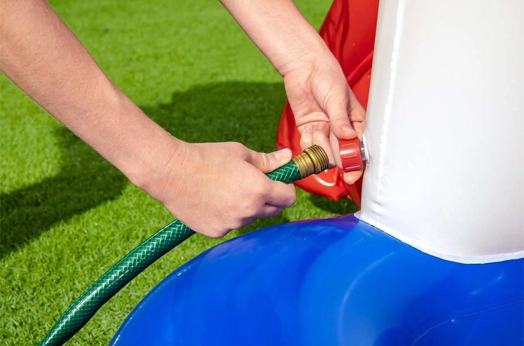 Havuzu su ile doldur ve kaydıraktan suya dal.