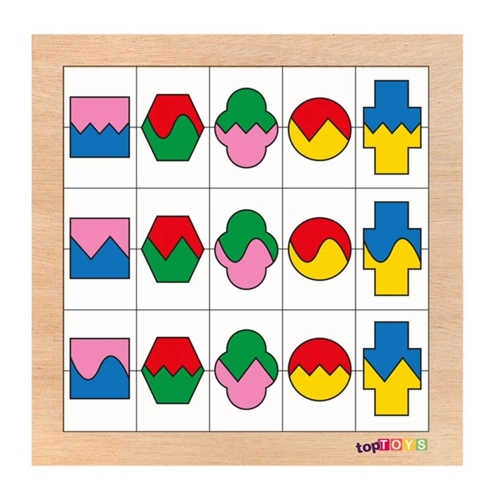 •  Geometrik şekiller oluşturmak için 2 kartı eşleştirin. Çocuklar, sıraları ve sütunları koordine ederek döşemeleri hizalamak için eşleşen iki yarıyı bulurlar. Bu oyun da el-göz koordinasyonunu ve mekansal akıl yürütme becerilerini ve renk öğrenmeyi teşvik eder.