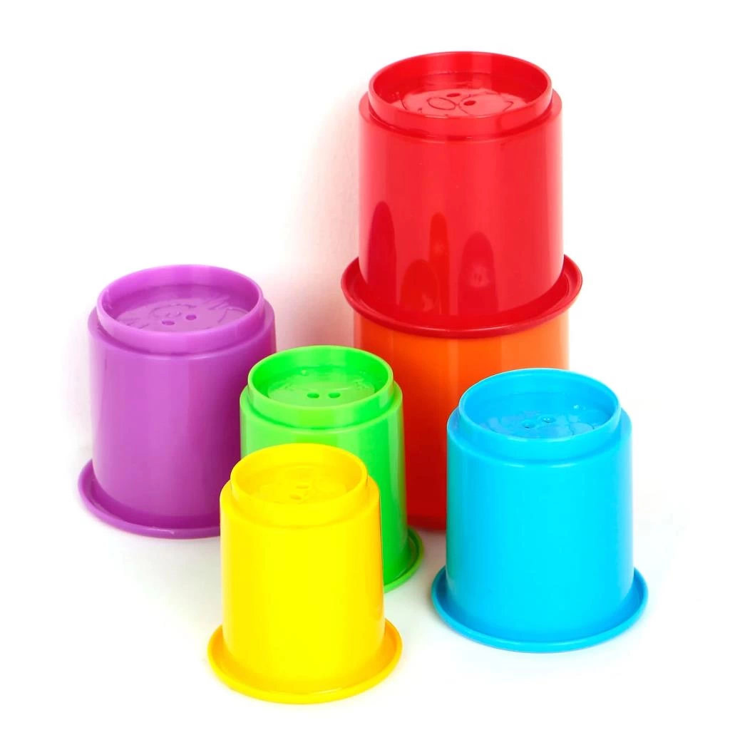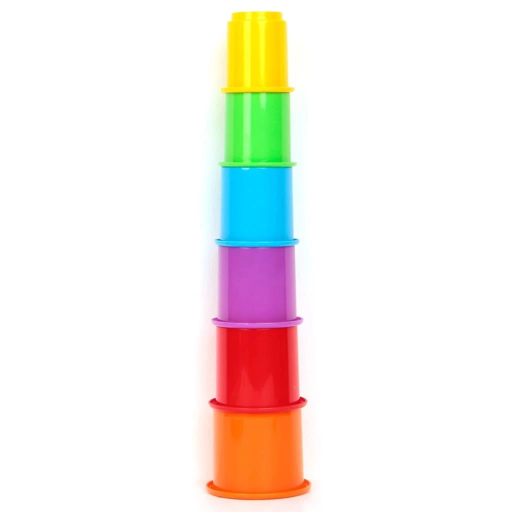 Çocuklar için uygun olan eğitici kapları ister iç içe ister üst üste dizebilirler.