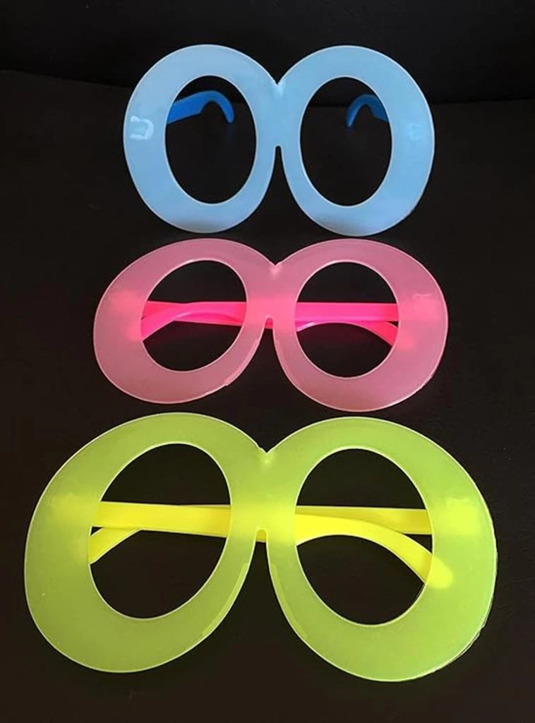 Fosforlu Oval Model Parti Gözlüğü Karanlıkta Yanan Gözlükler 12 Adet, partiler, festivaller veya diğer özel günlerde eğlenceli ve gizemli bir görünüm elde etmek isteyenler için mükemmel bir seçimdir. Oval tasarımı, neon renkleri ve karanlıkta parlayan özelliği ile bu gözlükler sizi partinin en şık ve gizemli konuğu yapacak.