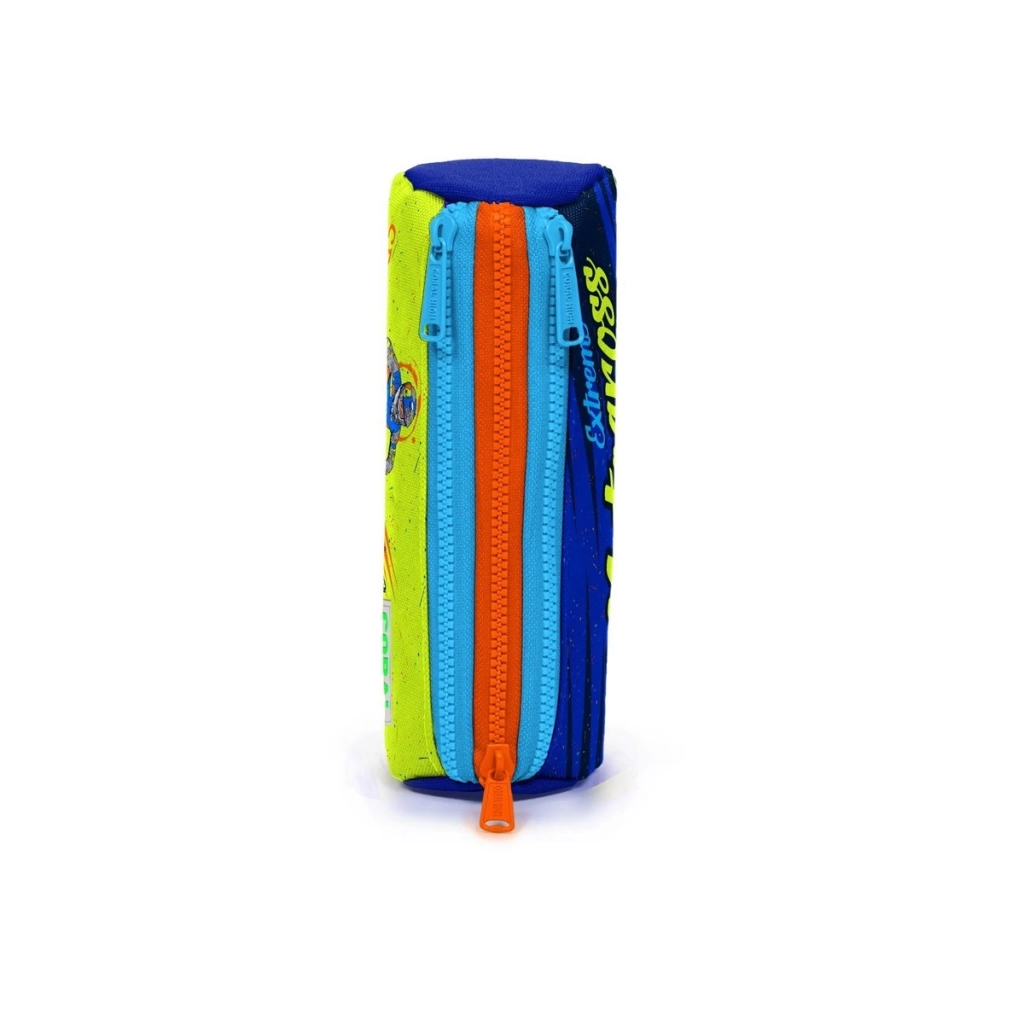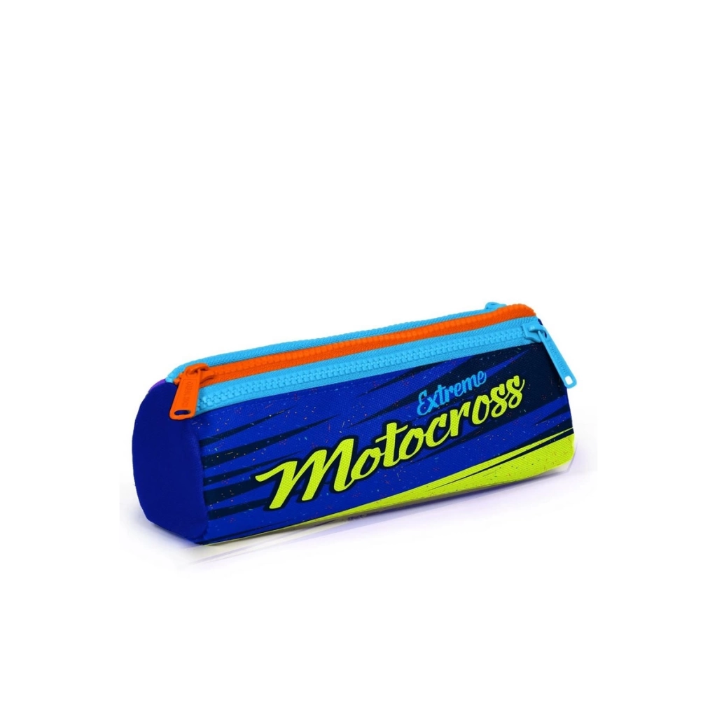 Coral High Kids Fosforlu Sarı Saks Motorsiklet Desenli Üç Bölmeli Kalem Çantası 22042