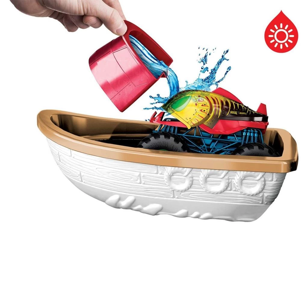 Color Shifters Piran-ahhh arabasını fırlatın ve Alligator’ın buzlu suyla dolu ağzına indiğinde, Monster Trucks’a yepyeni bir görünüm veren bir renk değişikliği meydana gelir.