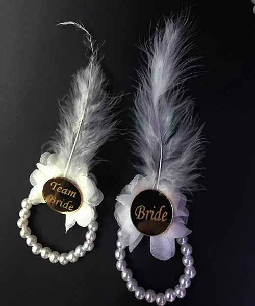 Üzerinde Altın renk pleksi üzeri bride-team bride yazıları vardır