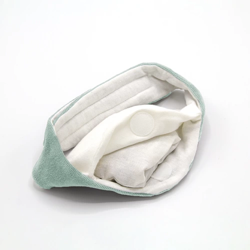 Kiraz çekirdekli kese 1 dakika ısıtılmalı ve kemerin cebine konularak bebeğin karnına gelecek şekilde bağlanmalıdır.