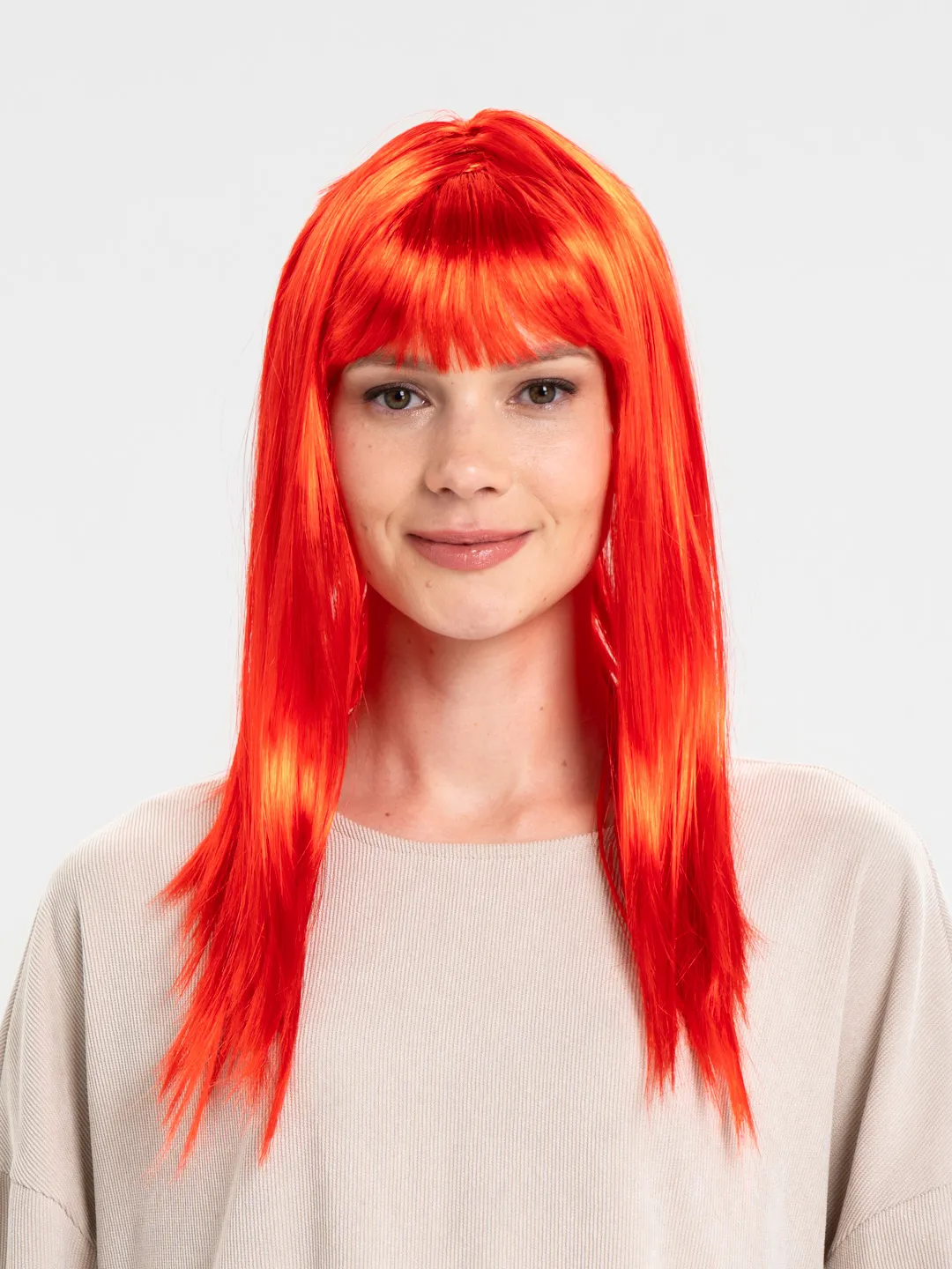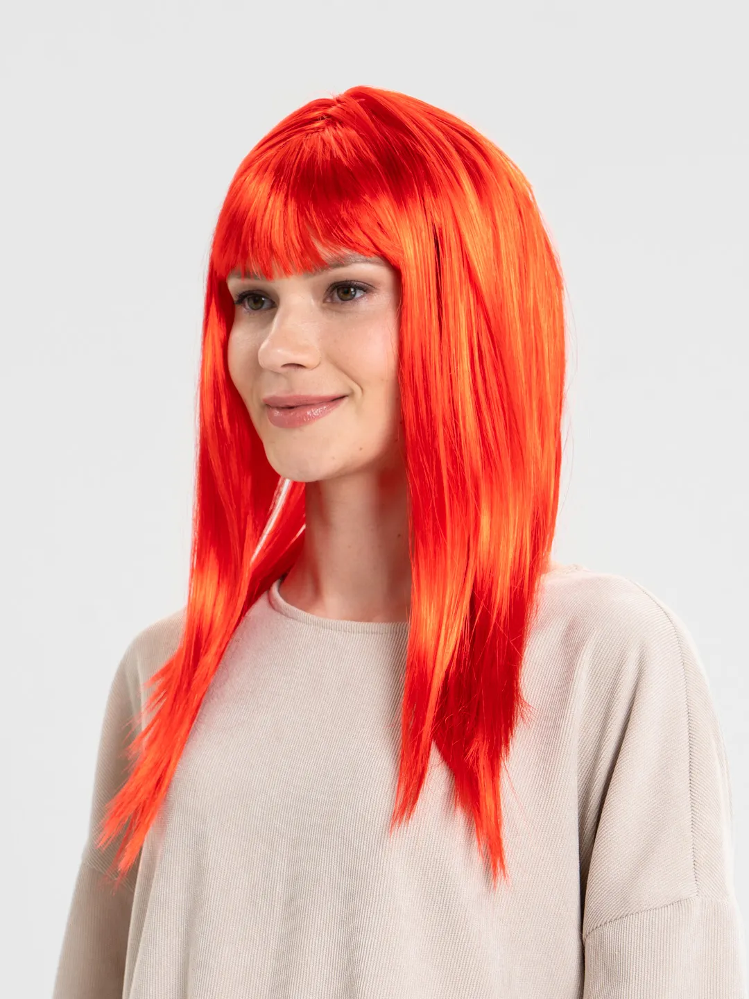Çocuk Kırmızı Renk Uzun Düz Parti Peruğu