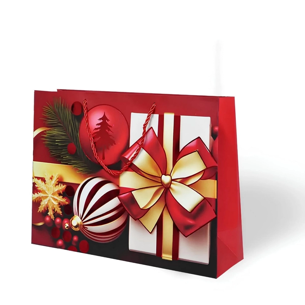 Lüks Karton Çanta Varak Baskılı Yılbaşı Temalı 32×26 cm