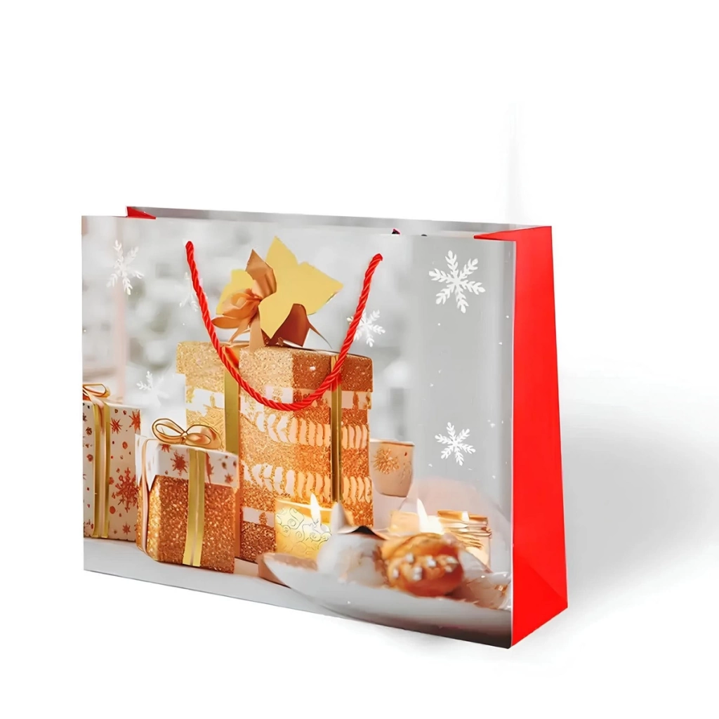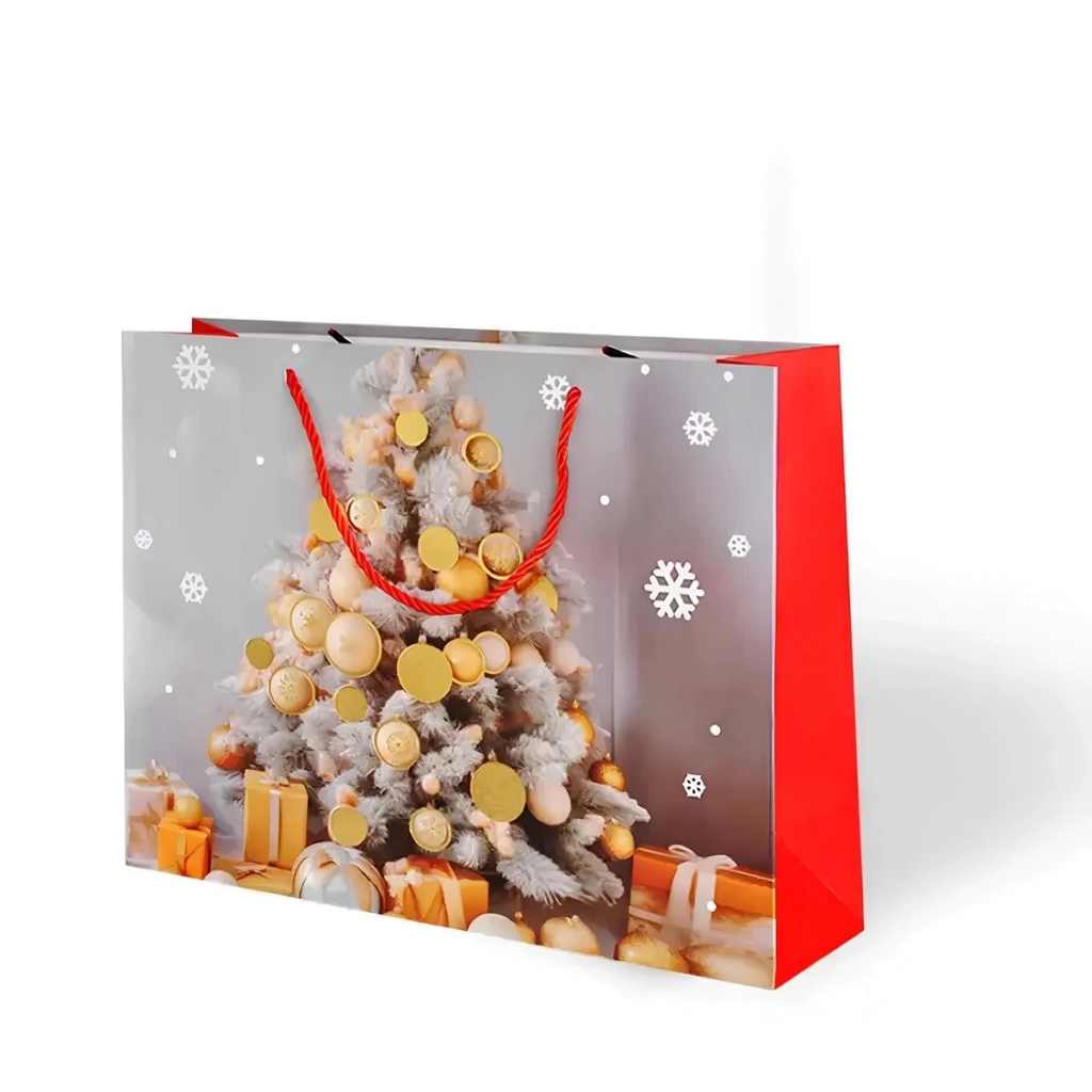 Lüks Pearl Karton Çanta Varak Baskılı Yılbaşı Temalı 32×26 cm