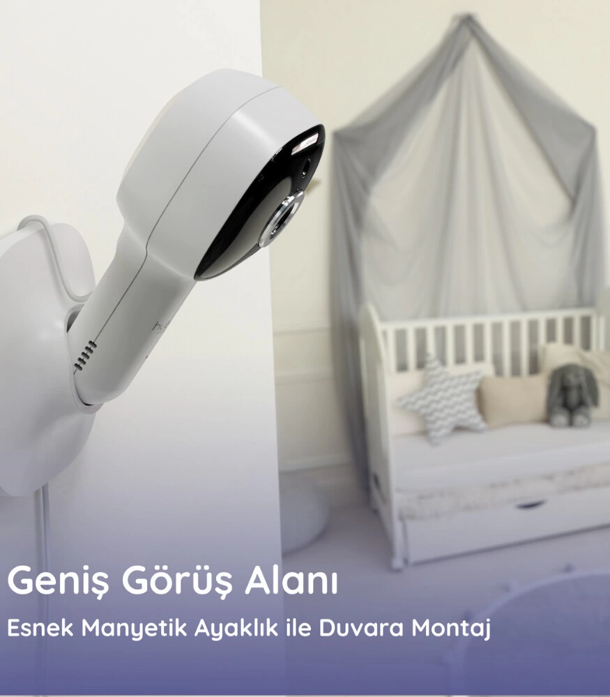 5” boyutundaki bebek monitörü size gece veya gündüz net bir görüntü sunar ve kamerada bulunan 7 farklı renkteki gece lambası ve Uyku Eğitmeni uygulamasıyla uykusuz geceler geçmişte kalır.