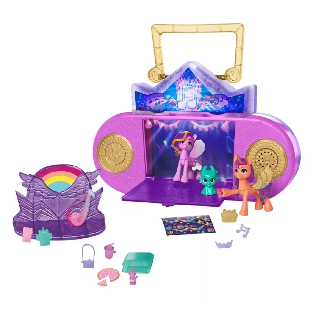 2’Sİ 1 ARADA OYUN SETİ | Taşınabilir kaset çalar şeklindeki oyun setinin bir yüzünde spa salonu, diğer yüzünde ise müzik sahnesi var. Oyun seti, My Little Pony çizgi dizisinden esinlenen 4 farklı şarkıdan bölümler çalıyor.