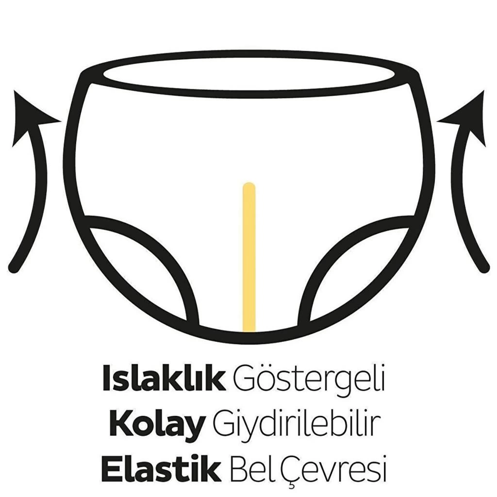 Ürünün dış yüzeyinde yer alan ıslaklık göstergesi bebeğin tuvalet takibinin kolayca yapılmasına imkan tanır.