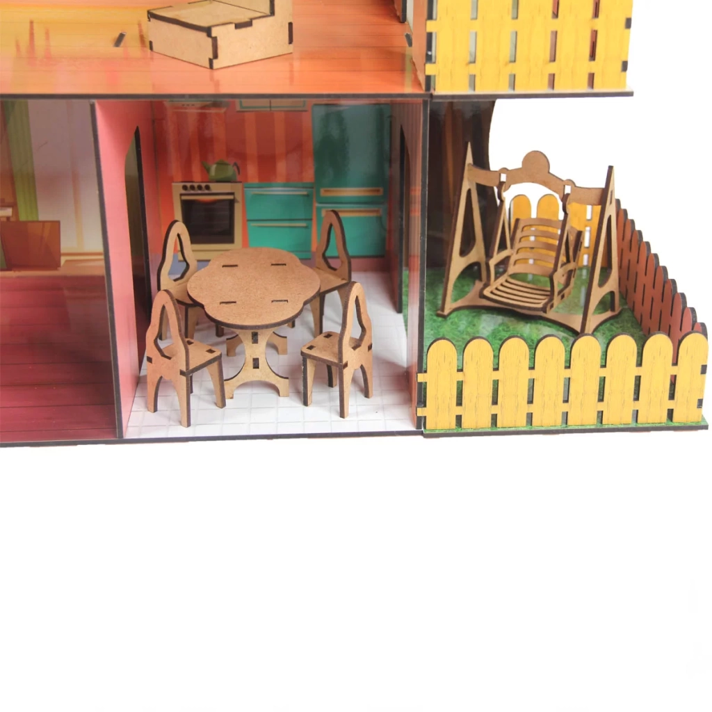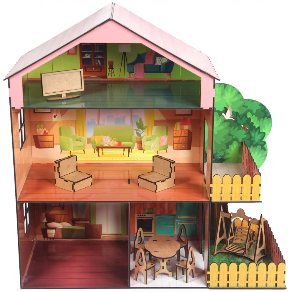 Oyuncak Ahşap Ağaçlı 3 Katlı Bebek Evi