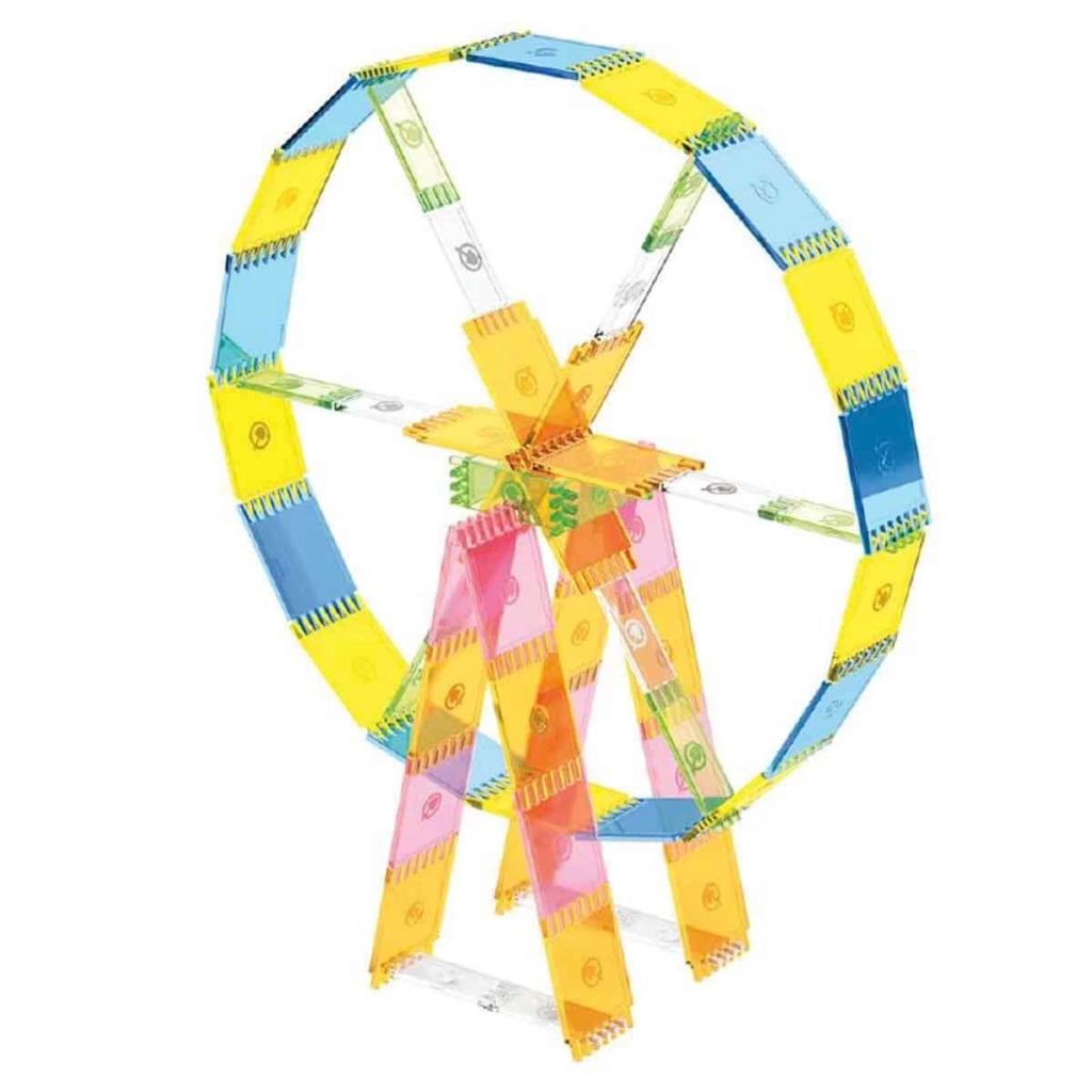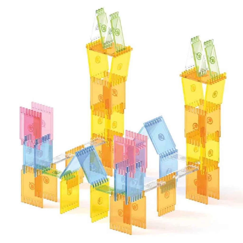 koca bir dünya inşa etmenizi sağlayan özel renkli plastik karolarla değiştirdiği yepyeni bir versiyondaki klasik “kart evleri” oyunu