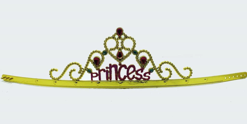 Çocuk   Prenses Yazılı Altın Renk Ayarlanabilir Parti Tacı 60 cm