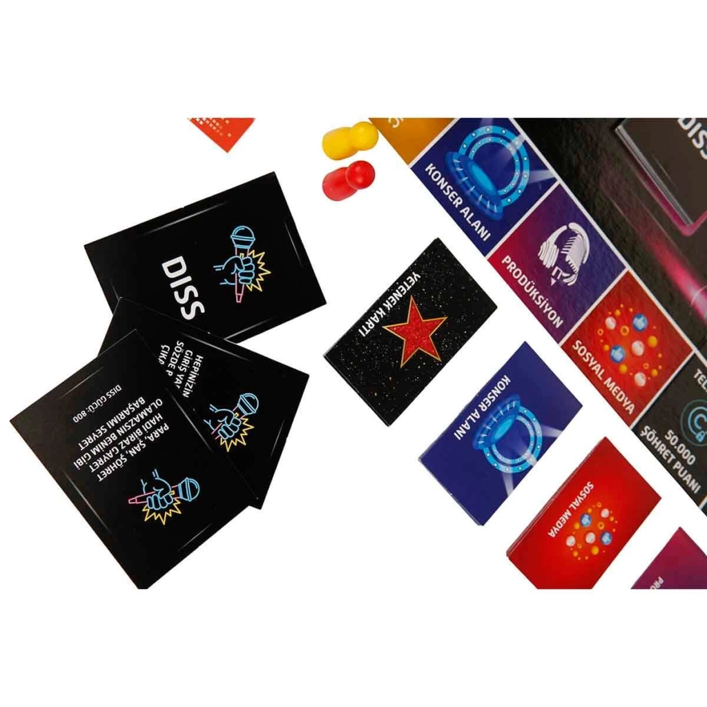 Kutu içerisinde: 1 adet oyun alanı, 1 adet zar, 4 adet piyon, 72 adet kategori kartı, 32 adet Diss kartı,