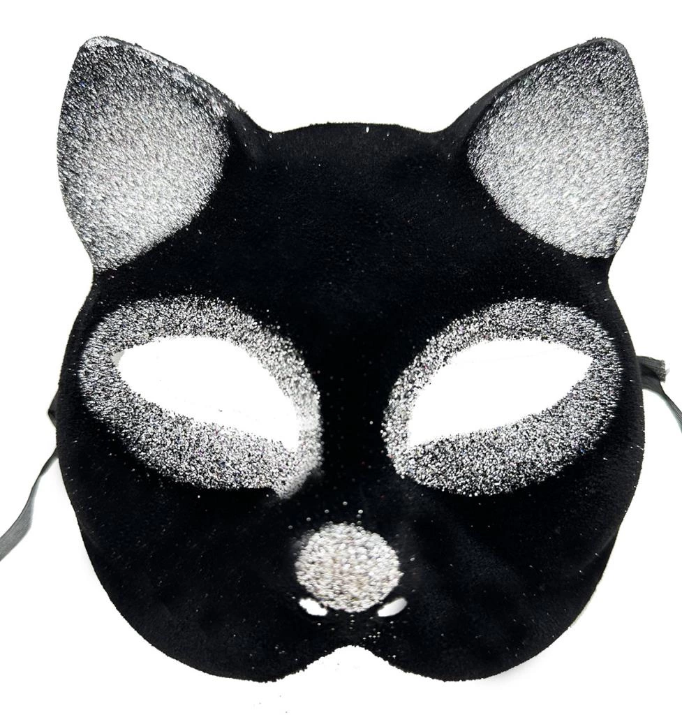Siyah Renk Gümüş Simli Süet Kedi Maskesi ile sevimli ve eğlenceli bir görünüm oluşturun ve özel günlerinizi unutulmaz kılın!