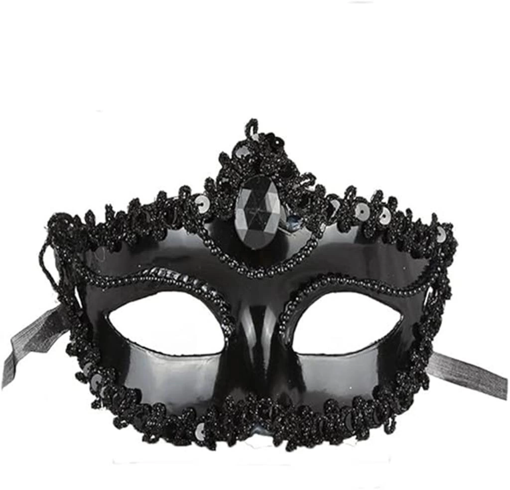 Siyah Renk Kenarları Dantelli Taşlı Parti Maskesi Venedik Balo