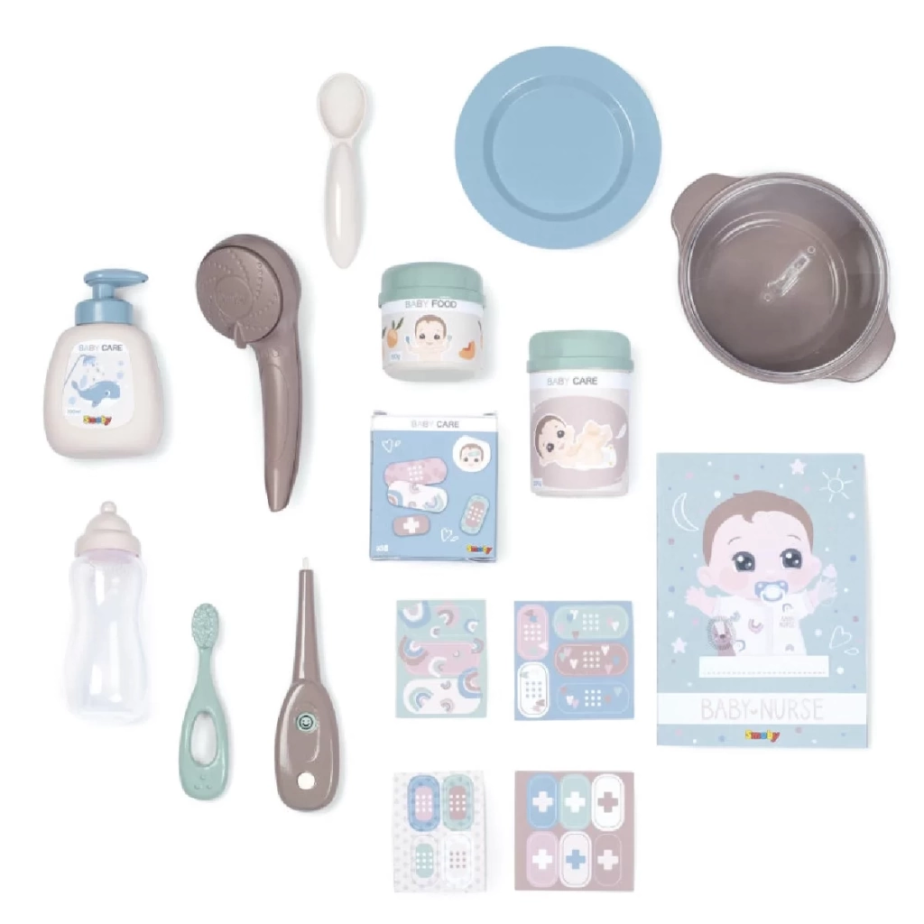 Aksesuarlar: biberon, kaşık tabağı, tencere, termometre, çeşitli boş oyun kapları ve ambalajlar
