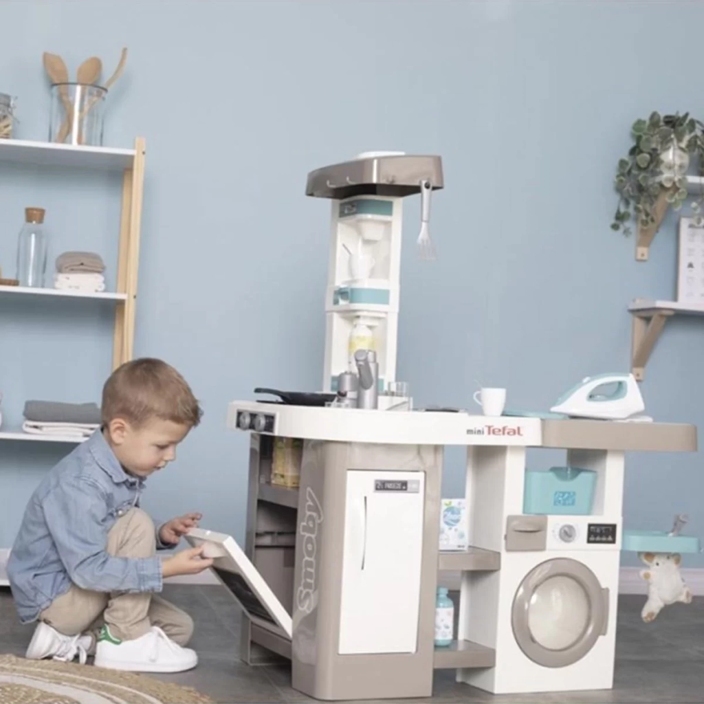 Smoby Tefal Stüdyo’nun çamaşırhaneli mutfağında yemek pişirebilir, çamaşır yıkayabilir ve ütüleyebilirsiniz,