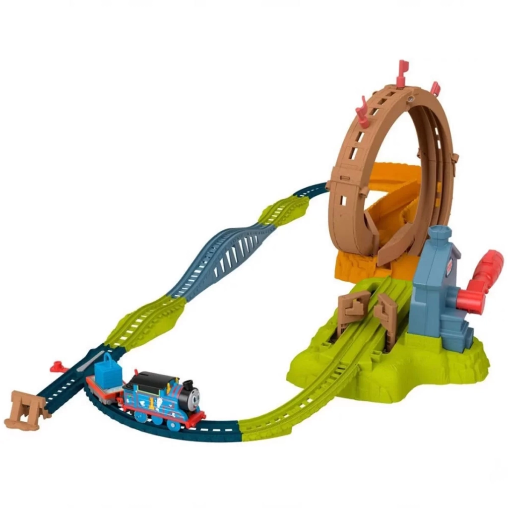 Bu motorlu tren seti, küçük mühendislerin Thomas ve Arkadaşları serisinden akrobatik sahneleri yeniden üretmeleri için yaklaşık 5 metrelik bir pist içerir: