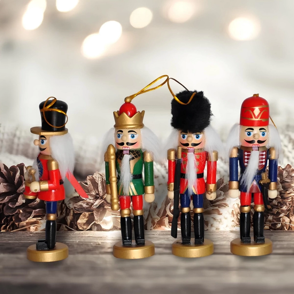 Ahşap Fındıkkıran Dekor Seti, dört farklı figürden oluşan detaylı ve şık tasarımıyla yılbaşı süslemelerinize büyüleyici bir hava