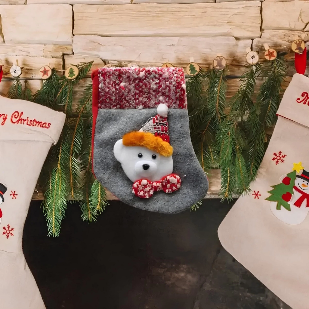 hediye çorabını anımsatan bu sevimli aksesuar, şömine başına, kapıya veya yılbaşı ağacına asılarak harika bir atmosfer