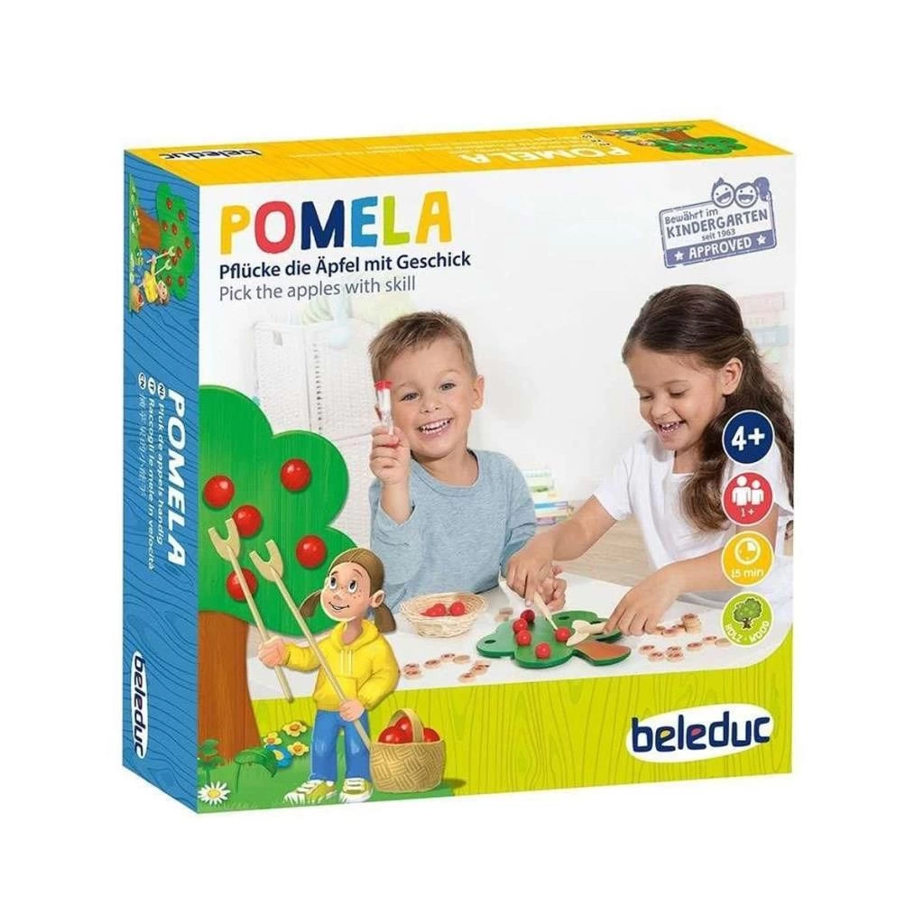 Beleduc Pomela oyunu 4 yaş ve üzeri çocukların tek başlarına ya da çift kişi oynayarak ellerindeki toplama çubuğu ile ağaçtan en fazla sayıda elmayı almaya çalıştıkları eğlenceli bir oyundur.