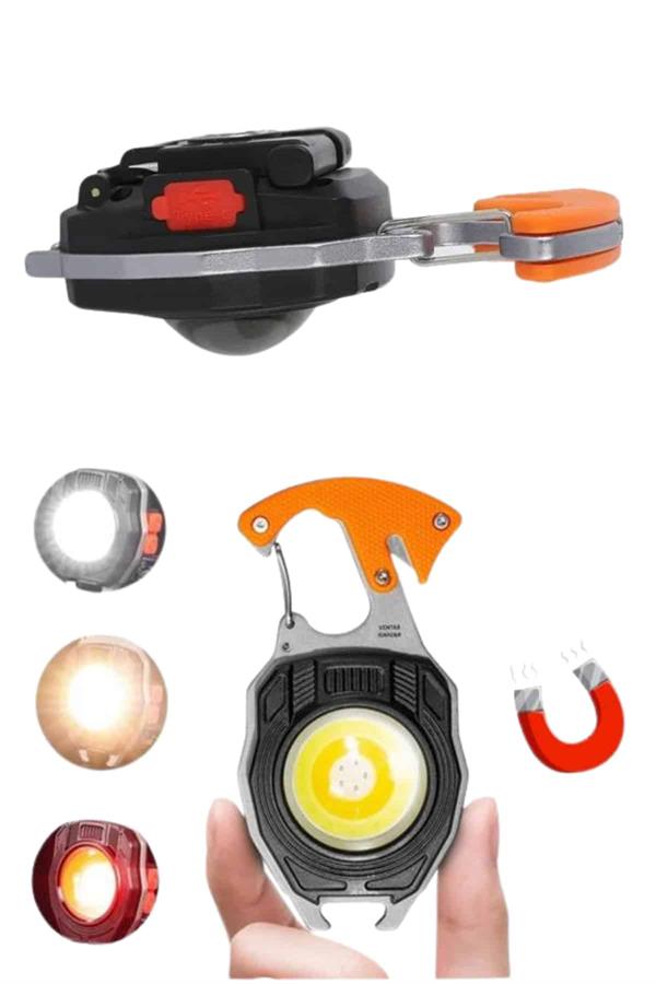 USB şarj edilebilir özelliği sayesinde her zaman yanınızda taşıyabileceğiniz bu çok fonksiyonlu mini LED lamba, kompakt tasarımıyla hem şehirde hem doğada büyük kolaylık sağlar. 7 farklı aydınlatma modu sunarak her ortama ve ihtiyaca uygun bir ışık deneyimi vadeder; ister kamp yaparken, ister gece yürüyüşlerinde veya acil durumlarda güvenli bir aydınlatma çözümü sunar. Hafif yapısı ve taşınabilirliği sayesinde sırt çantanızda, cebinizde ya da anahtarlığınıza takılı şekilde kolayca taşıyabilirsiniz. Ayrıca entegre anahtarlık ve çakmak gibi ekstra işlevsel detayları sayesinde, kamp ekipmanlarınızı tamamlayarak daha kullanışlı hale gelir. Her an her yerde size eşlik edecek bu LED lamba, hem pratik hem de çok yönlü bir yardımcıdır.