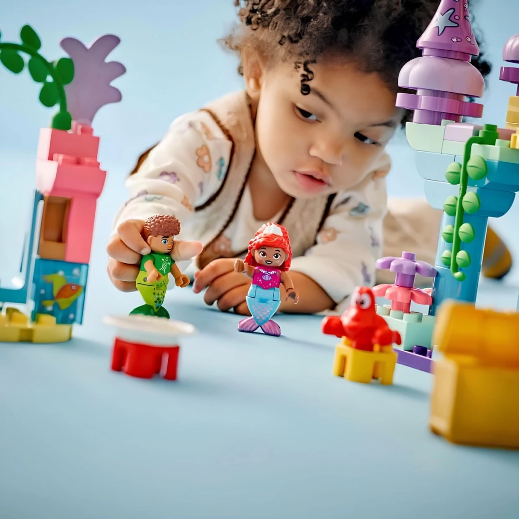 Okul öncesi çocukları için DUPLO Disney Ariel’in Sihirli Su Altı Sarayı yapım oyuncağıyla Disney Küçük Deniz Kızı