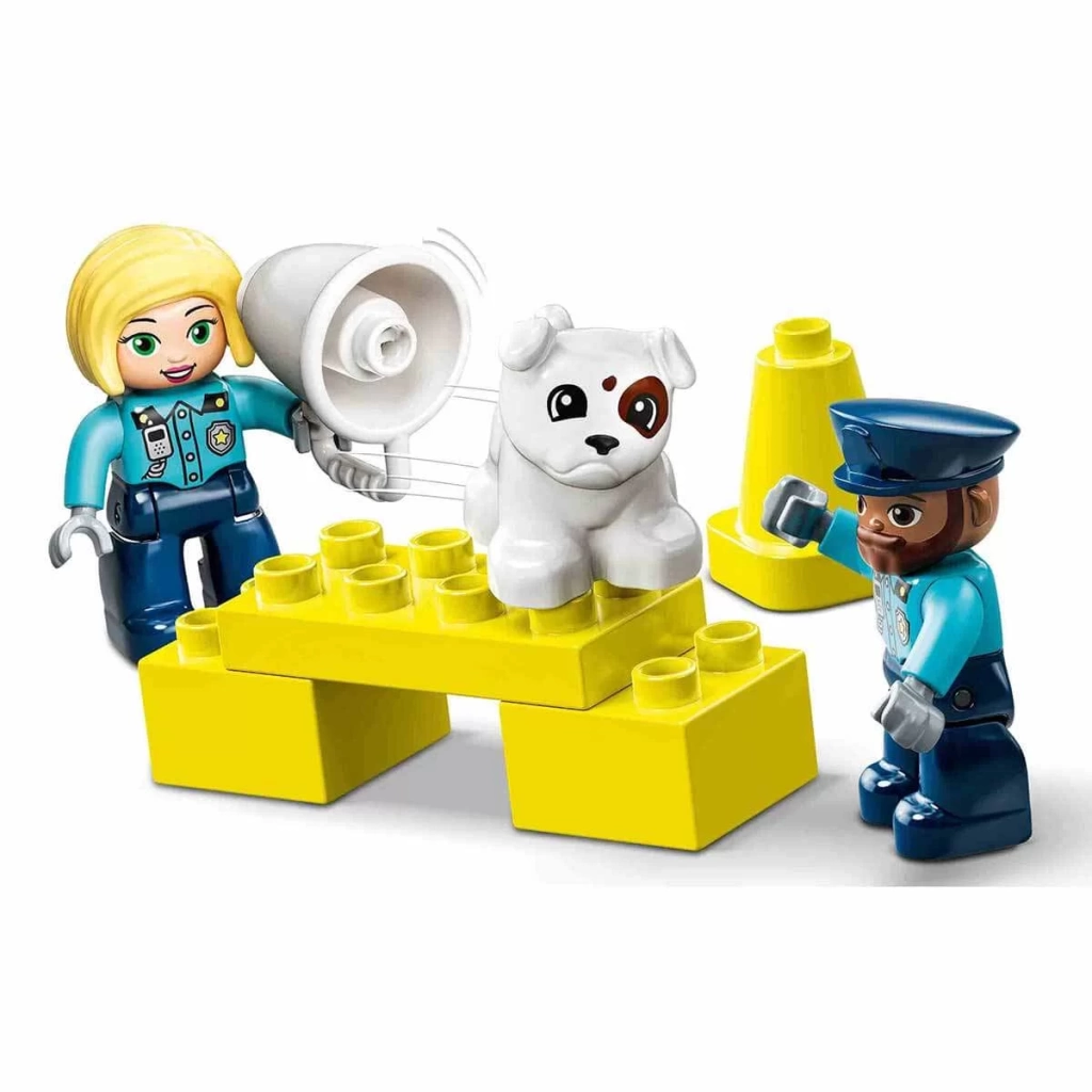 DUPLO Kurtarma Polis Merkezi ve Helikopter, 2 yaş ve üzeri çocuklara ilham verecek karakterler ve araçlar içeren, küçük çocuklara uygun bir polis arabalı oyun setidir.