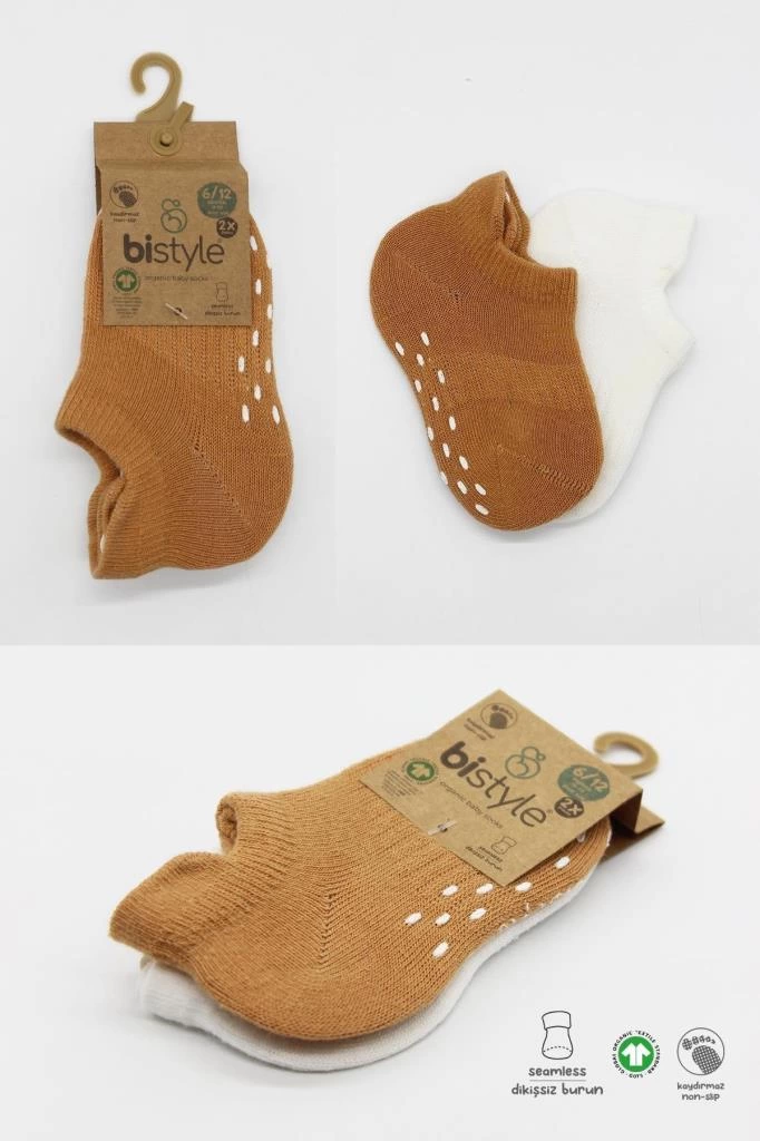 Bistil Bistyle Organik Kız Erkek Bebek Dikişsiz Basic Kaymaz Altı Taban Kaymaz Kaydırmaz Sneakers Patik Çorap Renkli Kokulu Pamuklu Yumuşak Antialerjik