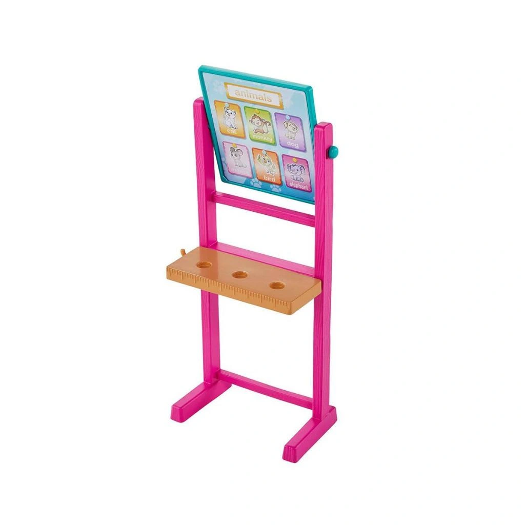 Çocukların kariyer hedeflerini keşfetmesini sağlayan Öğretmen Barbie® oyun setiyle öğrenme eğlencesine adım atın. Barbie® bebek (sarışın, 30 cm) üzerinde harf baskıları bulunan bir elbise ve pembe ayakkabılar giyer. Tepeden toplanmış sevimli topuzuyla derse hazır! İki farklı konunun öğretildiği hareketli bir yazı tahtası, sırt çantası, öğrenci bebek, öğrenci sırası, makas, yoklama kağıdı ve farklı hikayelere ilham vermesi için bir içecek kutusu bulunur. Kaplumbağa, sınıfın evcil hayvanıdır. Barbie®, dizüstü bilgisayarını kullanarak, sınıfa gelemeyen öğrencilere ders anlatabilir. Çocuklar farklı kariyer seçeneklerini denemeyi ve hayallerini keşfetmeyi çok sevecek. Bebekler tek başına ayakta duramaz. Renkler ve süslemeler çeşitlilik gösterebilir. 3 yaş ve üzeri için uygundur.