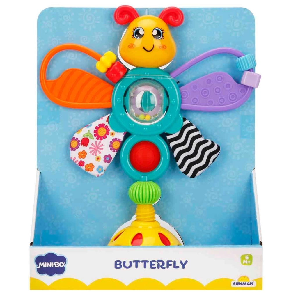 Oyun oynamayı çok seven minikler için Minibo Kelebek Çıngırak ve Dişlik geliyor! Zemine sabitlenerek eğlenceyi daha güvenli
