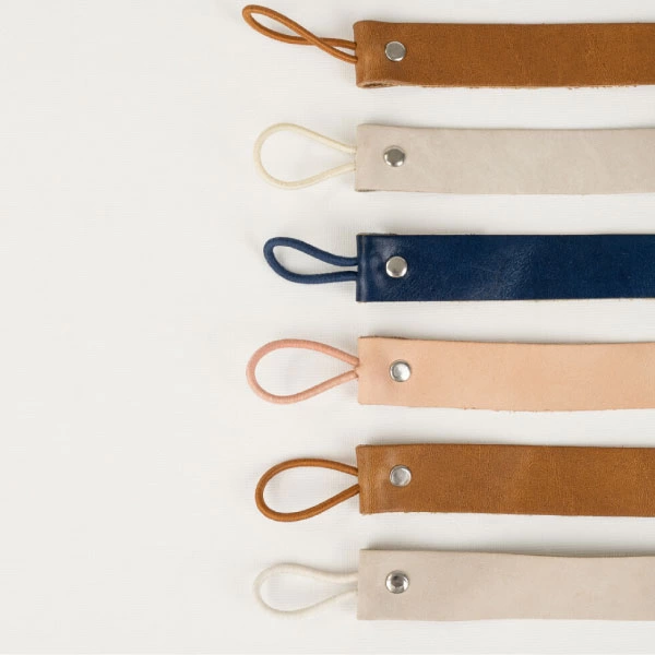 %100 doğal deri kullanılarak üretilen OiOi emzik askıları, emziklerin sık sık kaybolmasının ve kiri, tozu üzerine toplamasının önüne geçiyor.