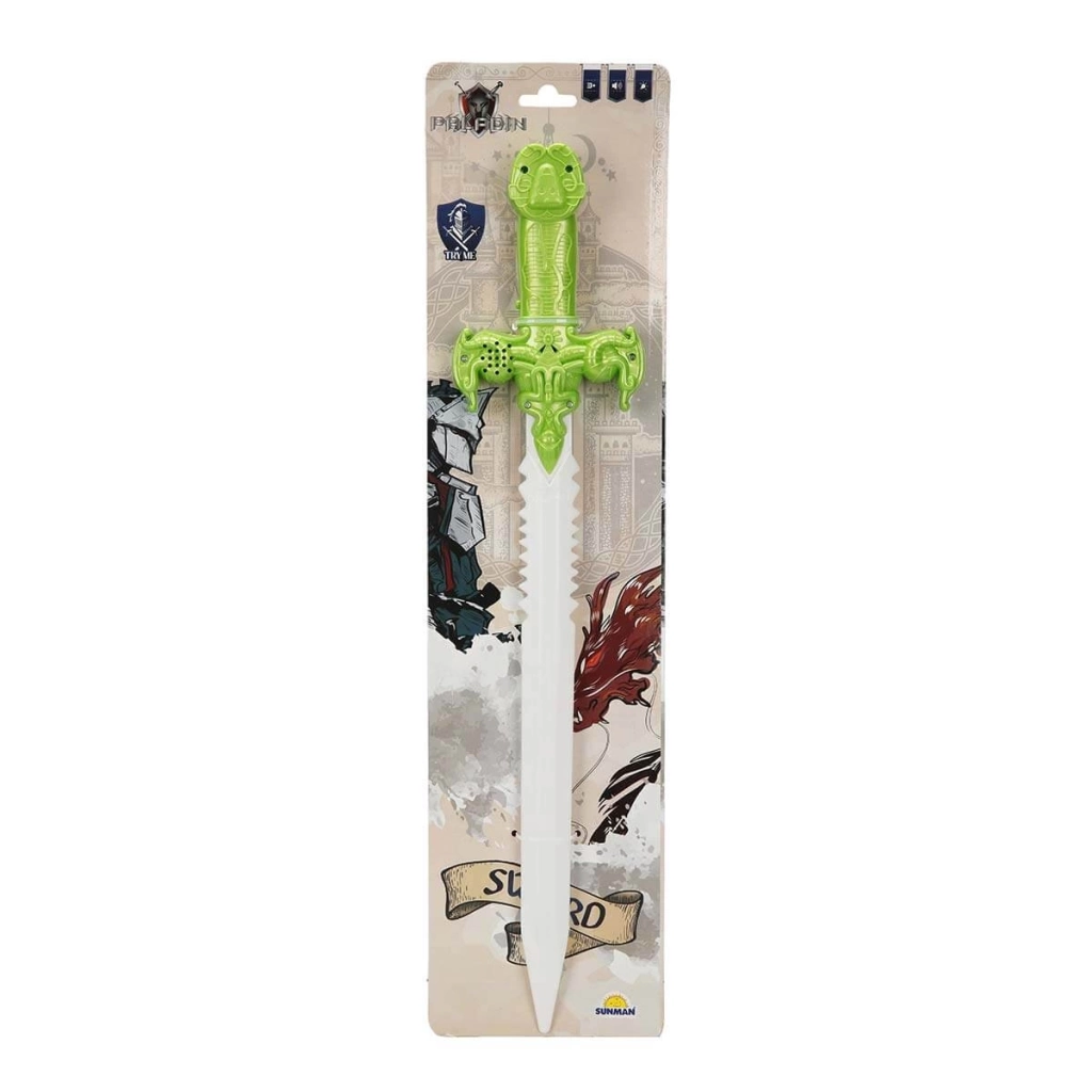 55 cm uzunluğundaki kılıcın; ayrıntılı tasarımı ile çocuklar hayallerindeki şövalye oyunlarını oynayabilecekler. Bu şövalye kılıcı ile oyunlarda gerçek bir savaşçı gibi savaşan minikler eğlenceli dakikalar geçirecek! Üstelik kılıçtan duyulan kılıç çarpışma sesleri ve ışıklar sayesinde oyun çok daha keyifli hale geliyor.