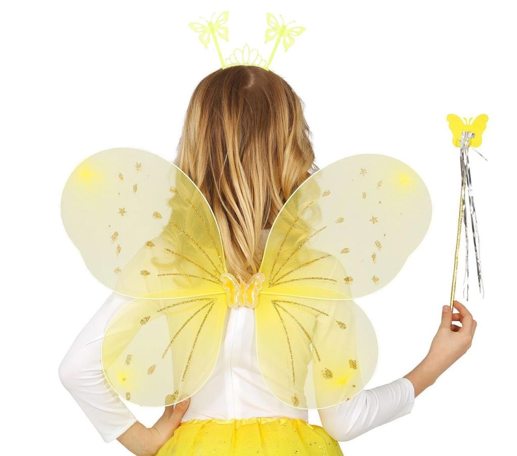 Eğitici Oyuncak Sarı Kelebek Erkek-Kız Seti – 50 cm Kelebek Kanadı, Taç ve Asa