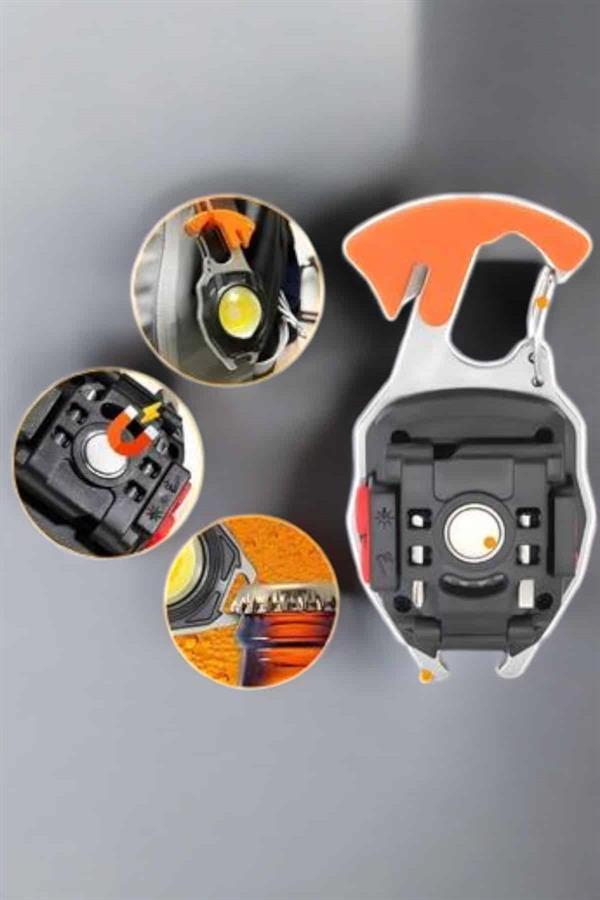 Zorlu koşullara uygun olarak tasarlanan bu çok işlevli anahtarlık feneri, yalnızca bir fenerden çok daha fazlasını sunar. Ultra parlak LED ışığı ile karanlık ortamlarda dahi maksimum görüş sağlar ve güvenliğinizi artırır. Acil durumlarda kullanabileceğiniz entegre düdük, doğa yürüyüşlerinde veya kamp yaparken hayat kurtarıcı bir detay olarak öne çıkar. Ayrıca, şişe açacağı ve tornavida gibi pratik araçlar, günlük kullanımda da size büyük kolaylık sağlar. USB üzerinden şarj edilebilen bataryası, çevre dostu bir çözüm sunarken sizi pil değiştirme zahmetinden kurtarır. Çoklu ışık modları sayesinde her duruma uygun bir aydınlatma seçeneği sunan bu ürün, taşınabilir ve hafif tasarımıyla her zaman yanınızda olmaya hazırdır. Açık hava etkinliklerinden günlük yaşamınıza kadar her alanda pratik çözümler sunan bu anahtarlık feneri, kompakt boyutuyla büyük işler başarır. Şimdi satın alın, her duruma hazırlıklı olun!