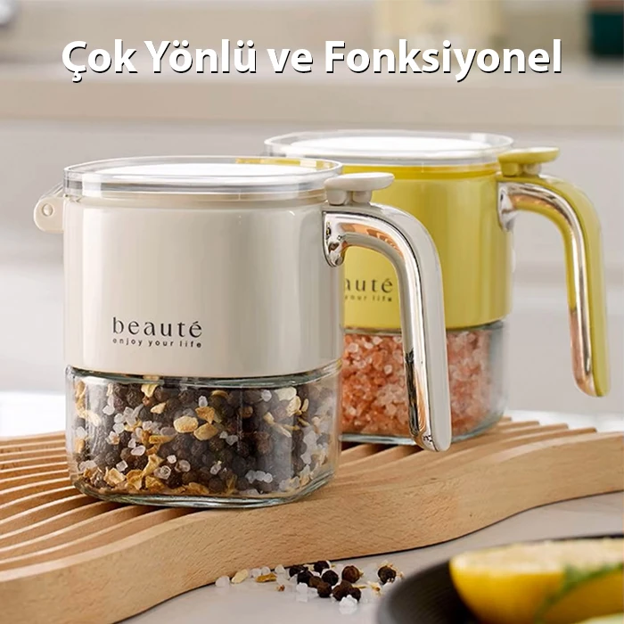 Büyük kapasiteli kavanoz, tuz, şeker, biber ve çeşitli baharatları saklamak için mükemmeldir.