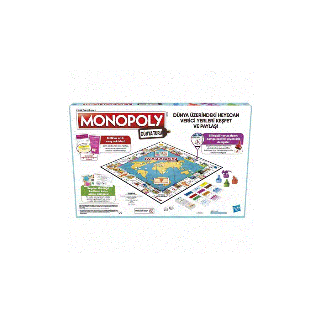 Seyahat etmeye ilgi duyanlar için harika bir oyun! Monopoly oyununun bu seyahat versiyonu, ailecek bir araya geldiğiniz oyun geceleri için eğlenceli bir oyundur ve 8 yaş ve üzeri yaştaki çocuklar için idealdir.